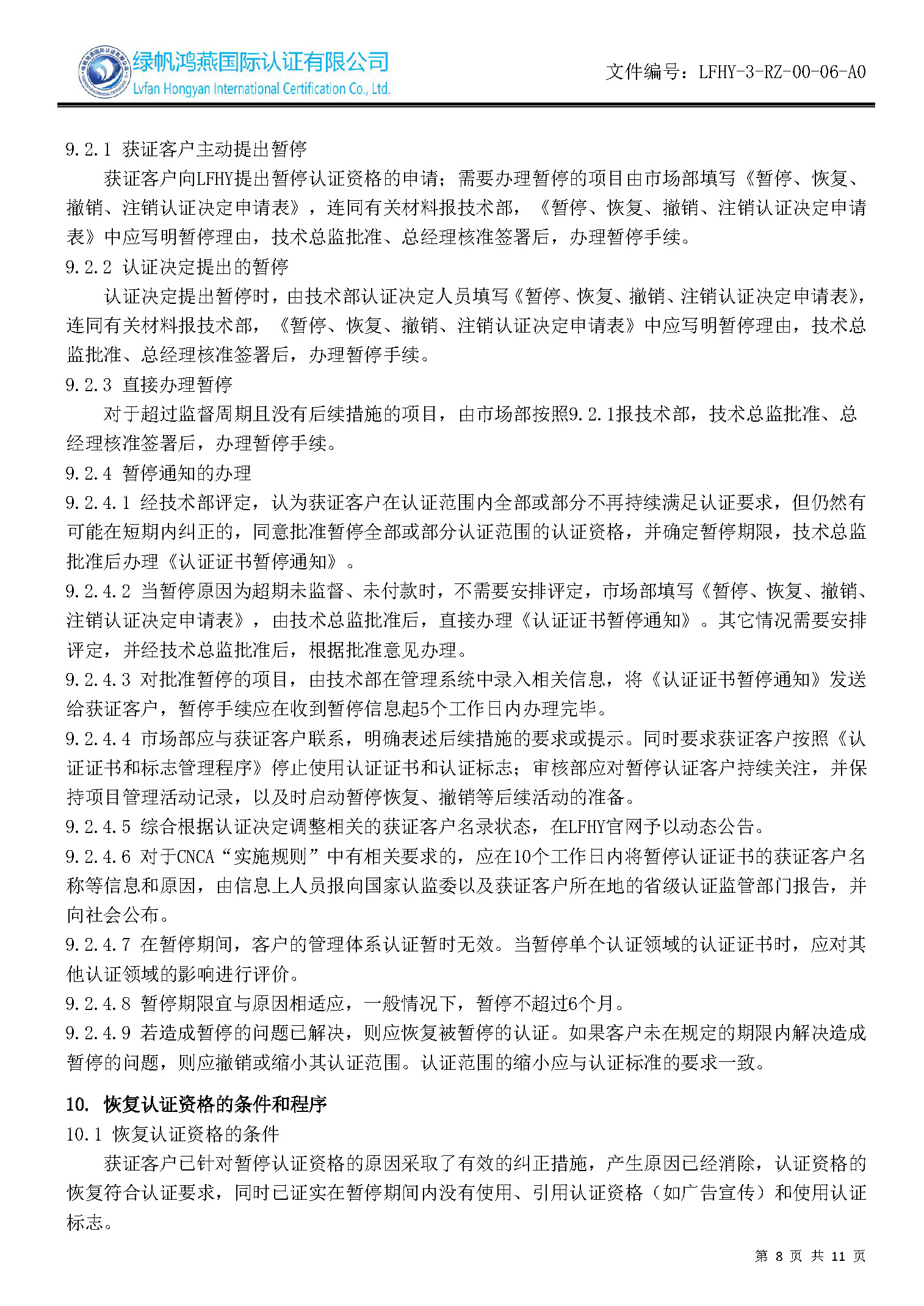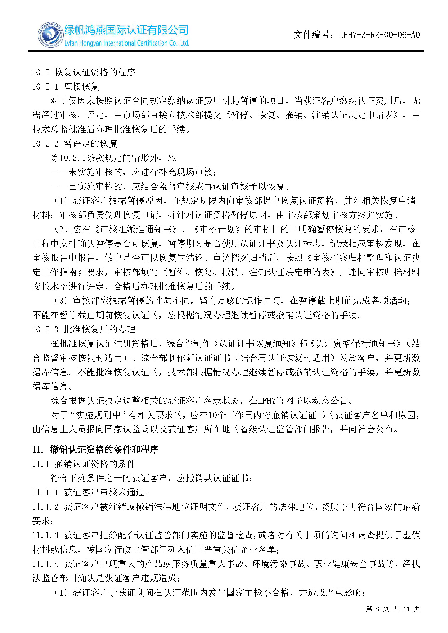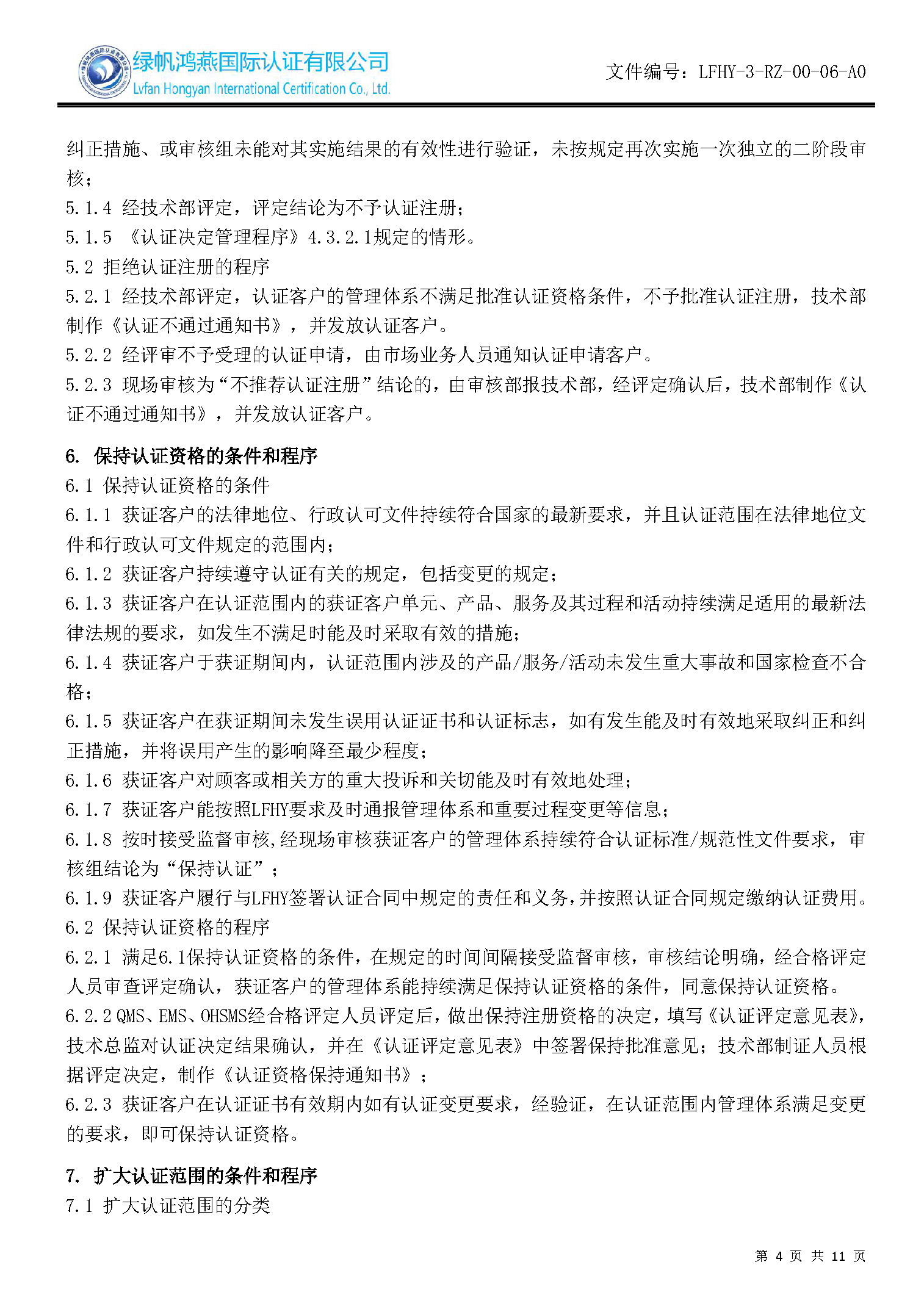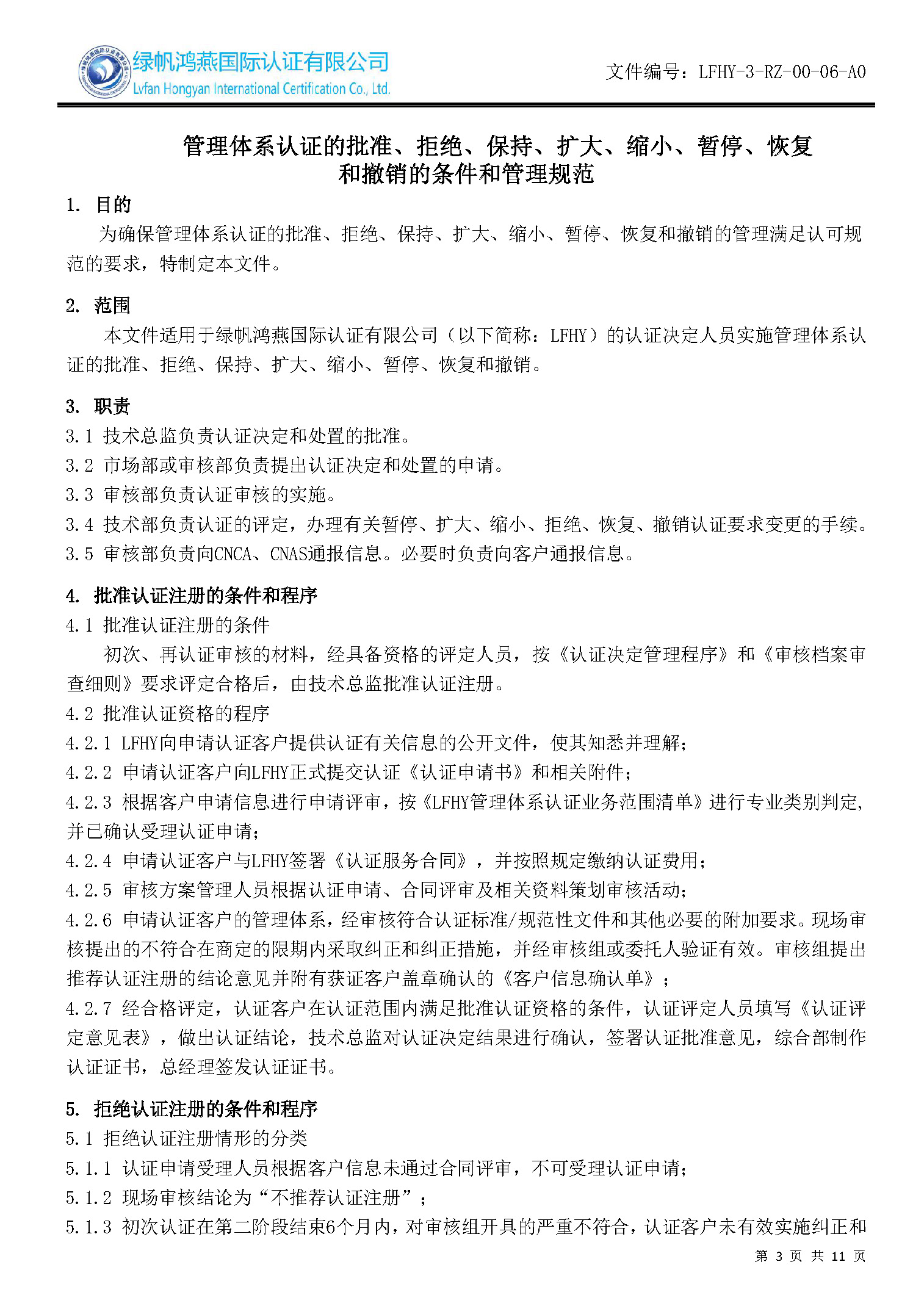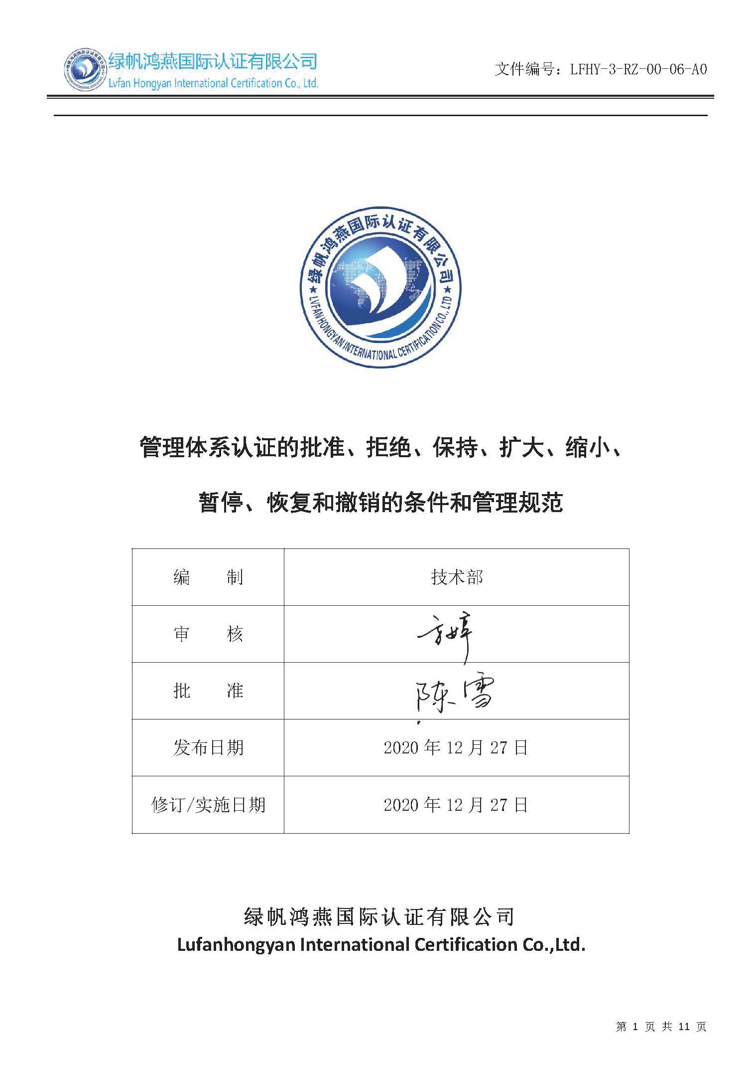 LFHY管理體系認(rèn)證的批準(zhǔn)、拒絕、保持、擴(kuò)大、縮小、暫停、恢復(fù)和撤銷的條件和管理規(guī)范